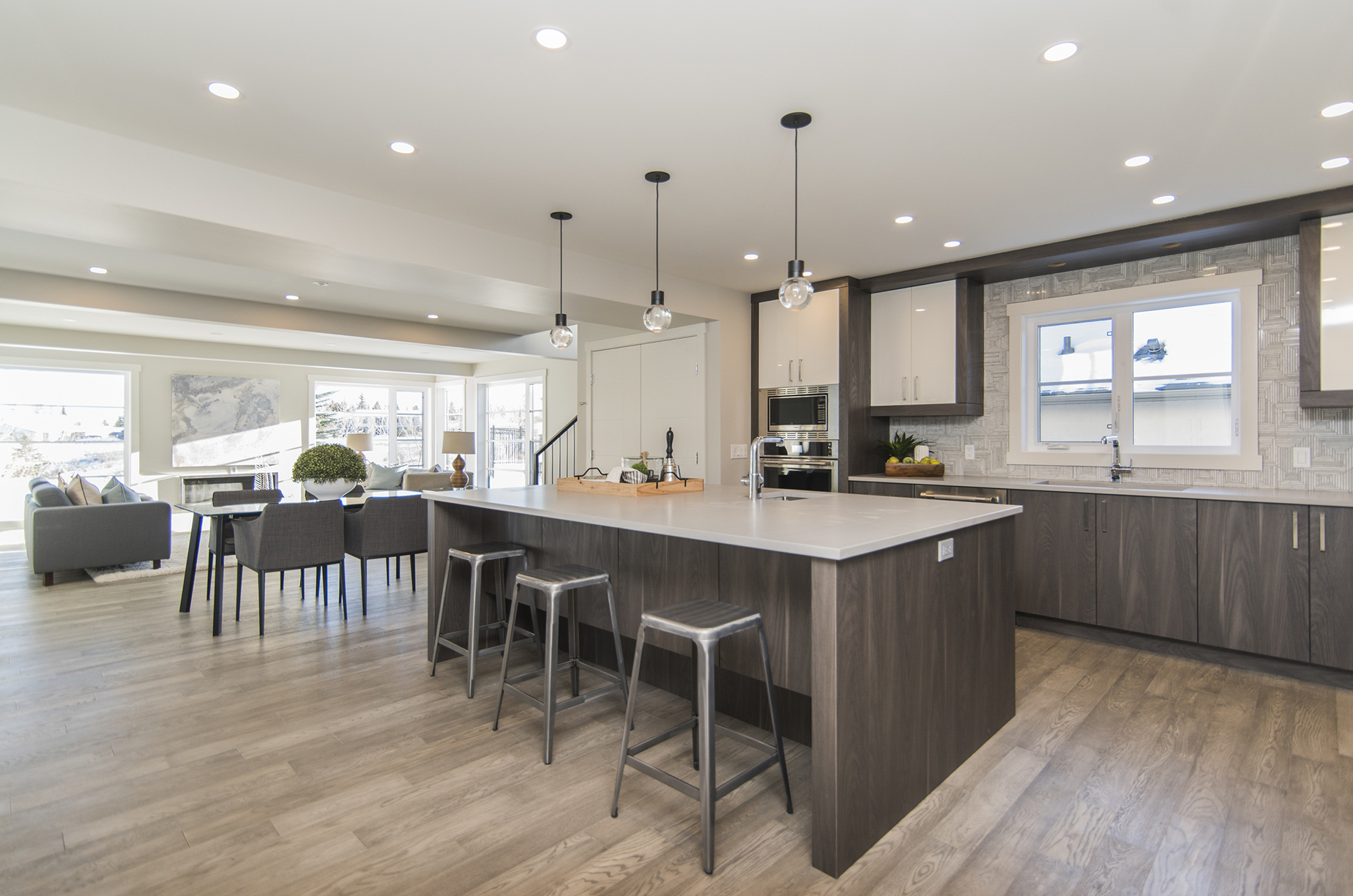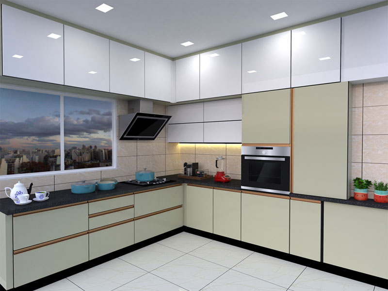 A versatile U-shaped kitchen layout displaying a vibrant combination of different colors and patterns with pistachio colored cabinets. A highly flexible classic L-shaped kitchen design with efficient workflow which can adapt to any sizes and styles of kitchens. A sleek contemporary kitchen that blends aspects of modern design with other styles and elegance that will never go out of style.
