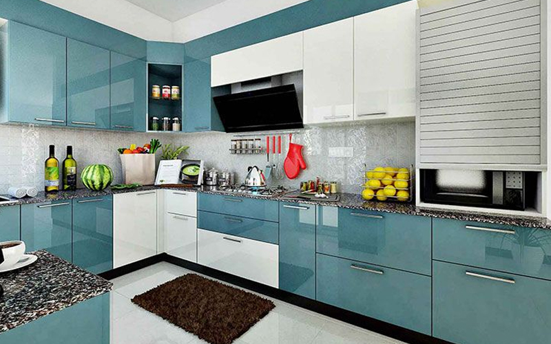 The basic structure of a modular kitchen is extremely practical. The units on the floor are called ‘base cabinets’ and serve as the foundation for the kitchen worktop which is usually made out of granite, marble, tile or wood. The ones fastened on the wall for storage purposes are known as ‘wall cabinets’